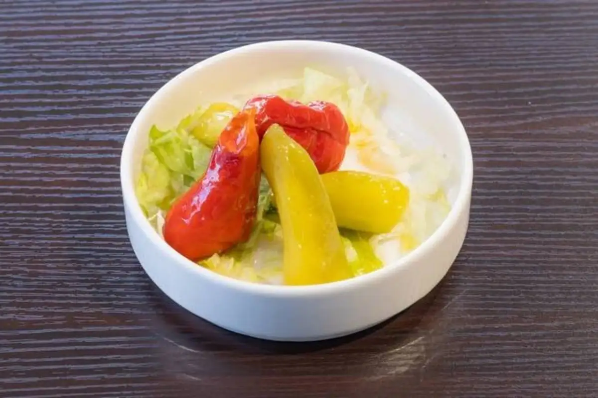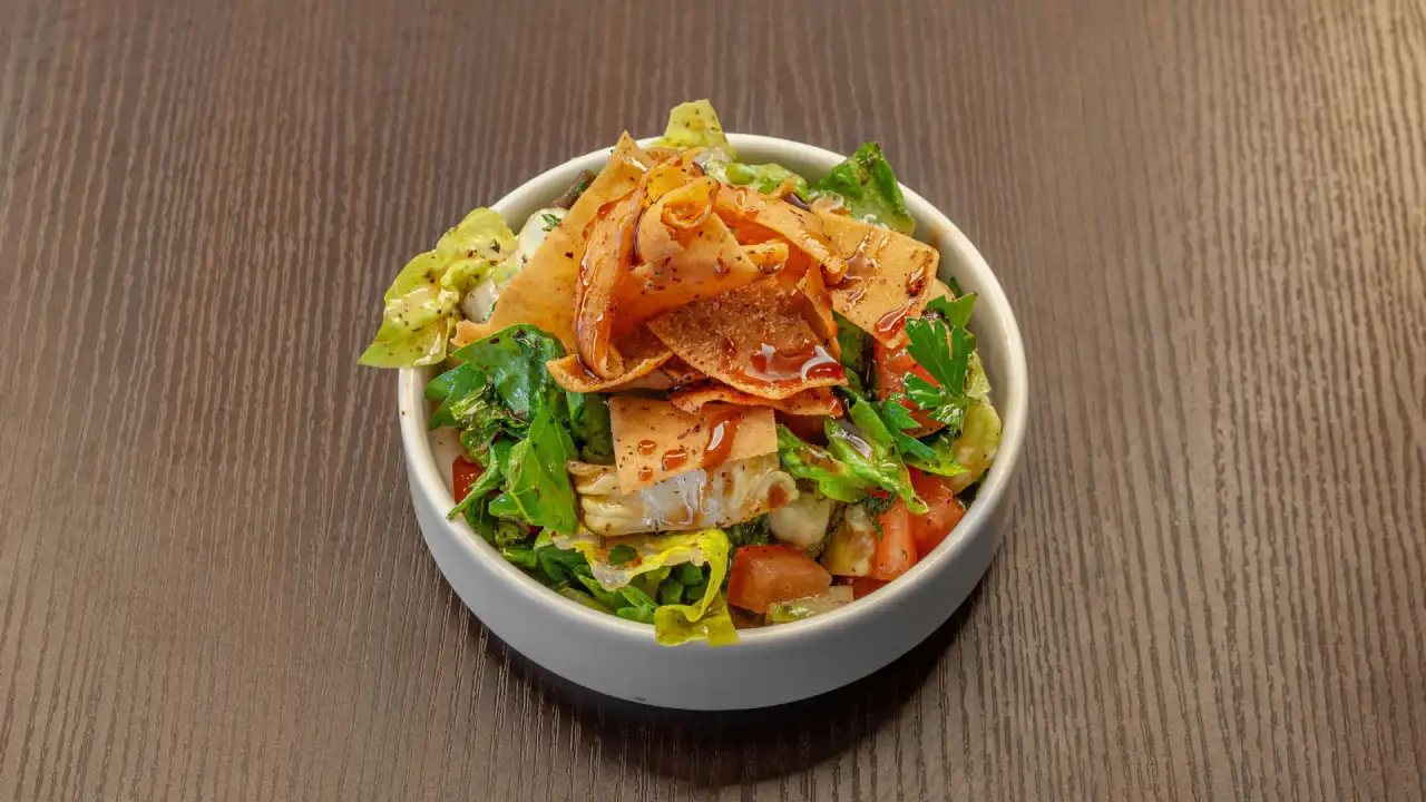 Pain pita croquant, légumes, sumac, vinaigrette, pain.