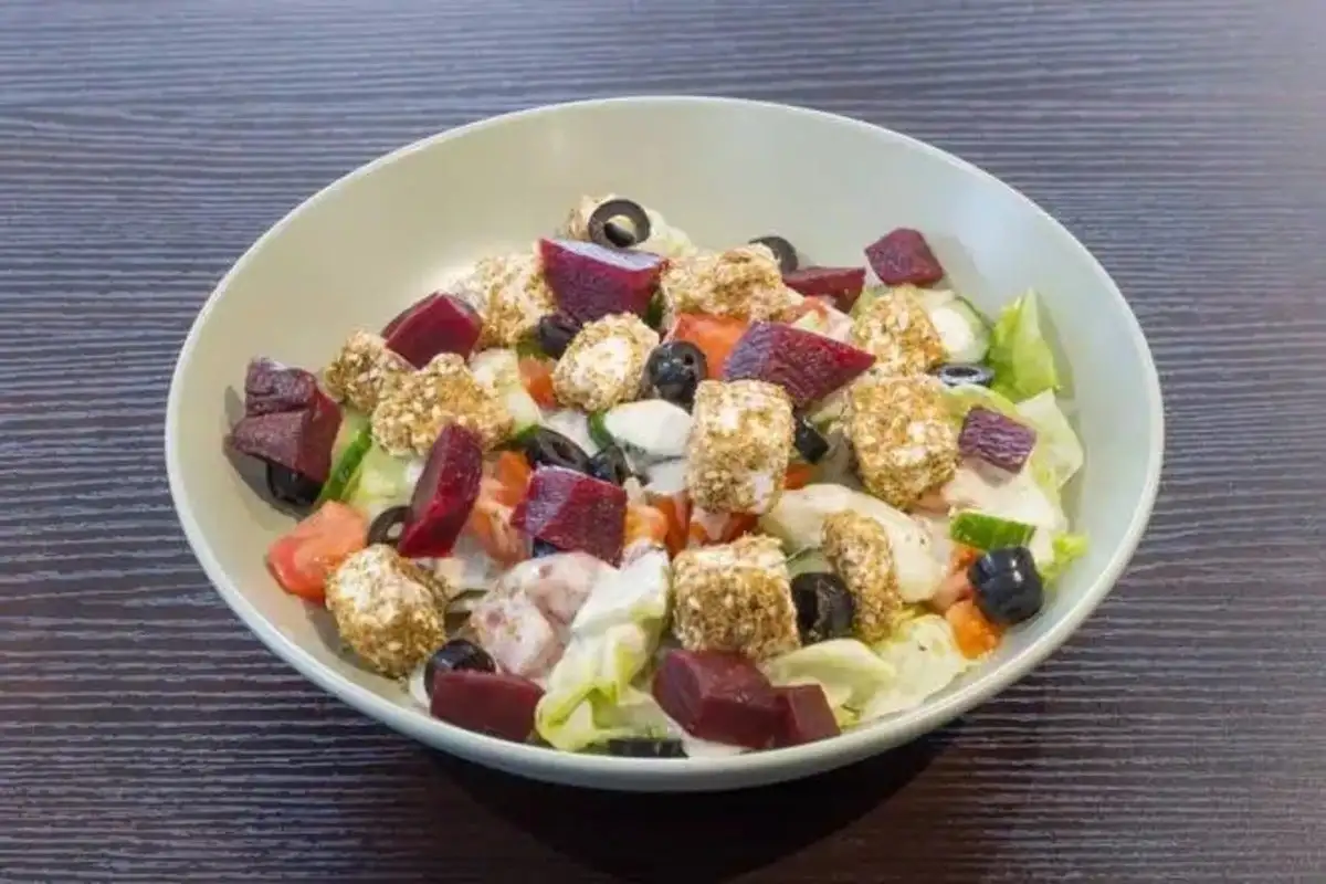 Fromage crémeux, légumes frais, herbes parfumées, sauce yaourt