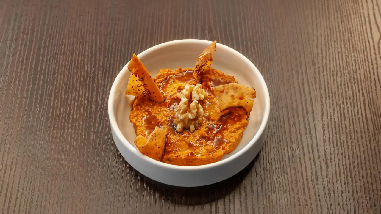 Dip épicé de poivrons rouges, noix, grenade, saveurs riches et vibrantes.