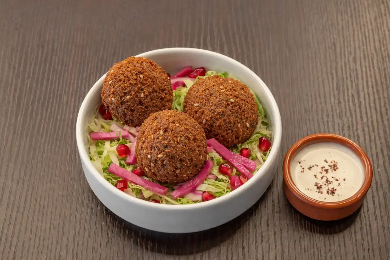 Falafel croquante, salade, navet, sauce tahini